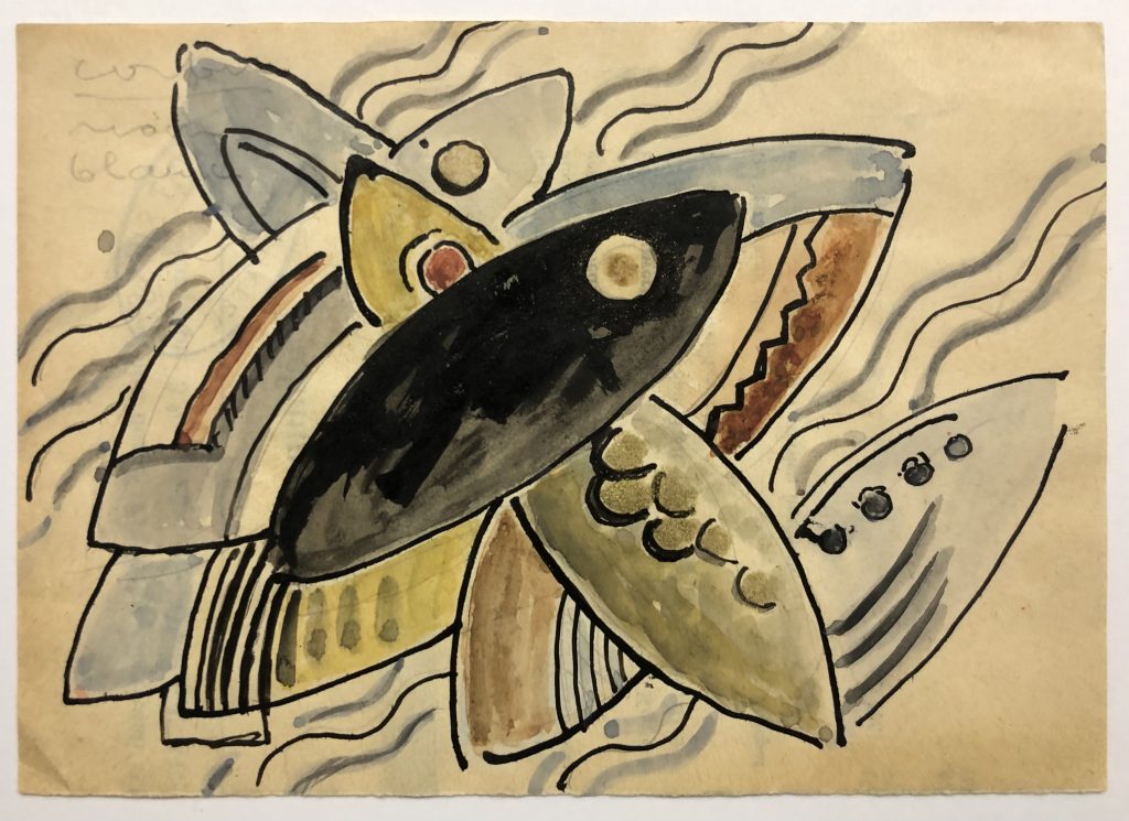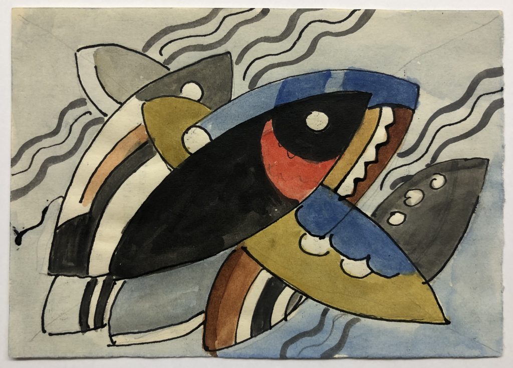 Fisch Skizzen IV, 1957, Mischtechnik auf Papier, 14,5 x 10,5 cm